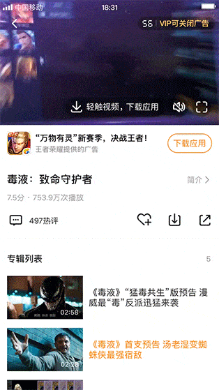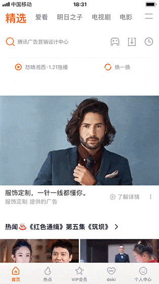前贴片:以短视频形式出现在腾讯视频APP视频内容播放前。
