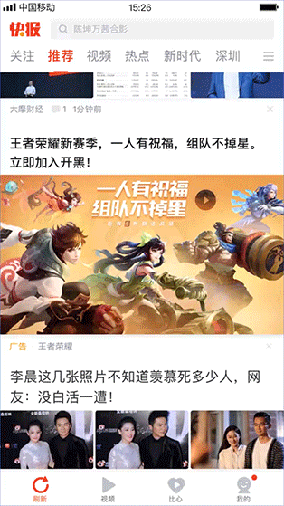 浮层视频:高质量、年轻化的视频内容;横版视频支持【1280*720】规格,竖版视频支持【720*1280】规格投放。